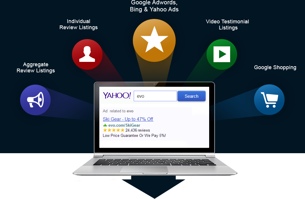 With all this incredible feedback, you need some amazing places to share it. Thanks to our agreements with Google, Bing and Yahoo, we’re able to directly syndicate and display your 5-Star listings in more places than any other review site, including Google Adwords, Google Shopping, Bing and Yahoo Ad Networks, along with multiple organic search locations in Google, Bing and Yahoo.